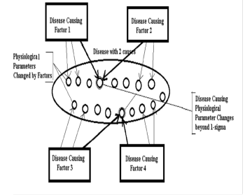 There can be many different disease causation factors but only few (2 or more ) physiological changes beyond 1-sigma which are required to cause a non-infectious disease.